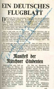 Münih Üniversitesi’nde dağıtılan bildiri net ifadeler, uzlaşmaz bir dil ve büyük bir cesaretle yazılmıştır. Duygu dolu ve hâlâ geçerliliğini koruyan bir manifesto niteliğindedir: “Bir parti komitesinin en aşağılık güç içgüdüsüne Alman gençliğinin arta kalanını feda mı edeceğiz? Asla! (…)